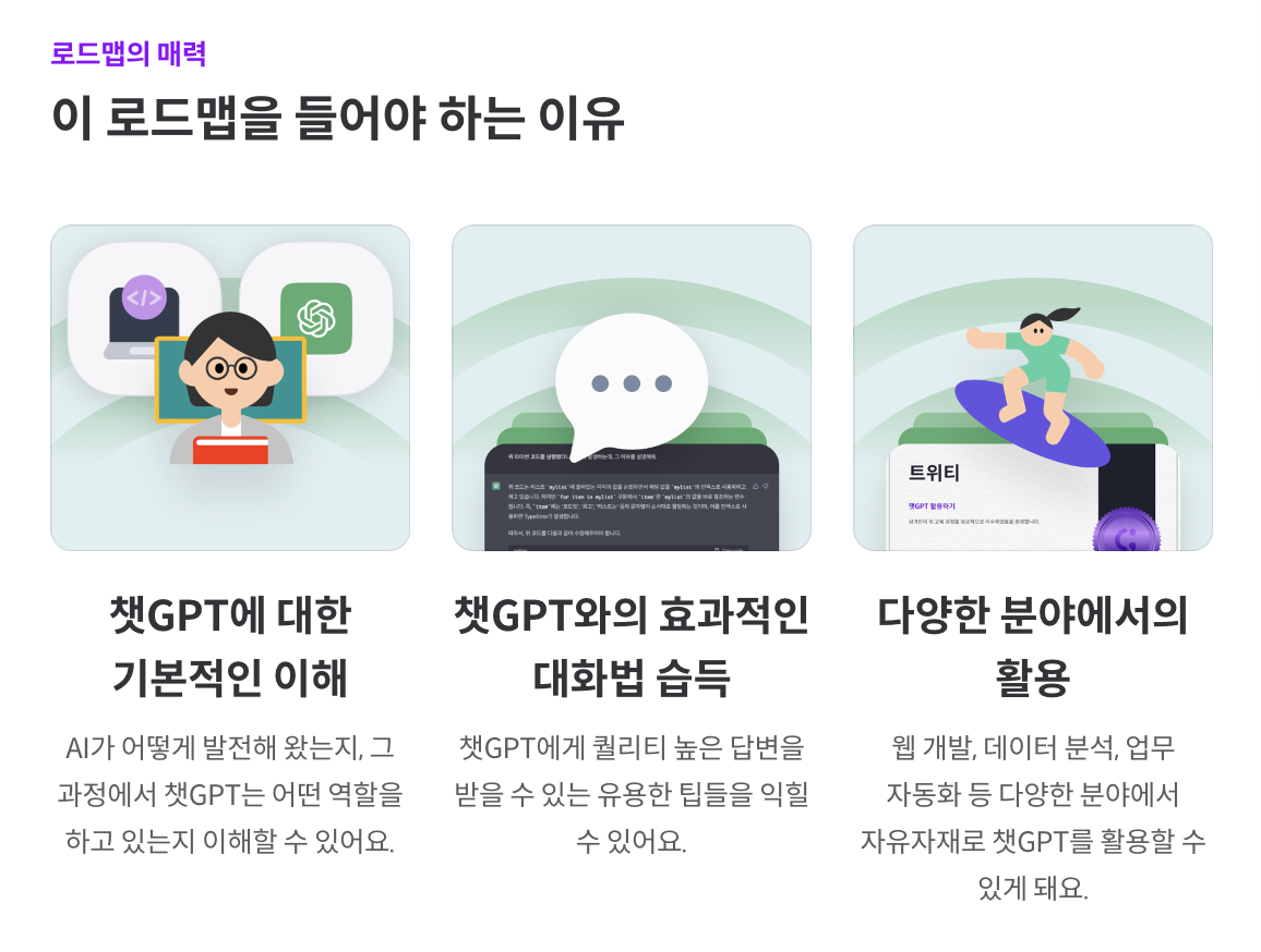 더불어 실습 강의를 통해서 챗GPT를 잘쓰는 방법을 배울 수 있는데요,