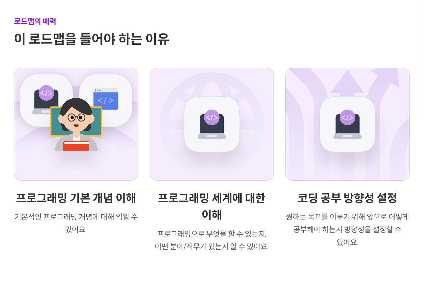 이 로드맵을 통해 프로그래밍 기본 개념 이해 및 프로그래밍에 대한 세계,