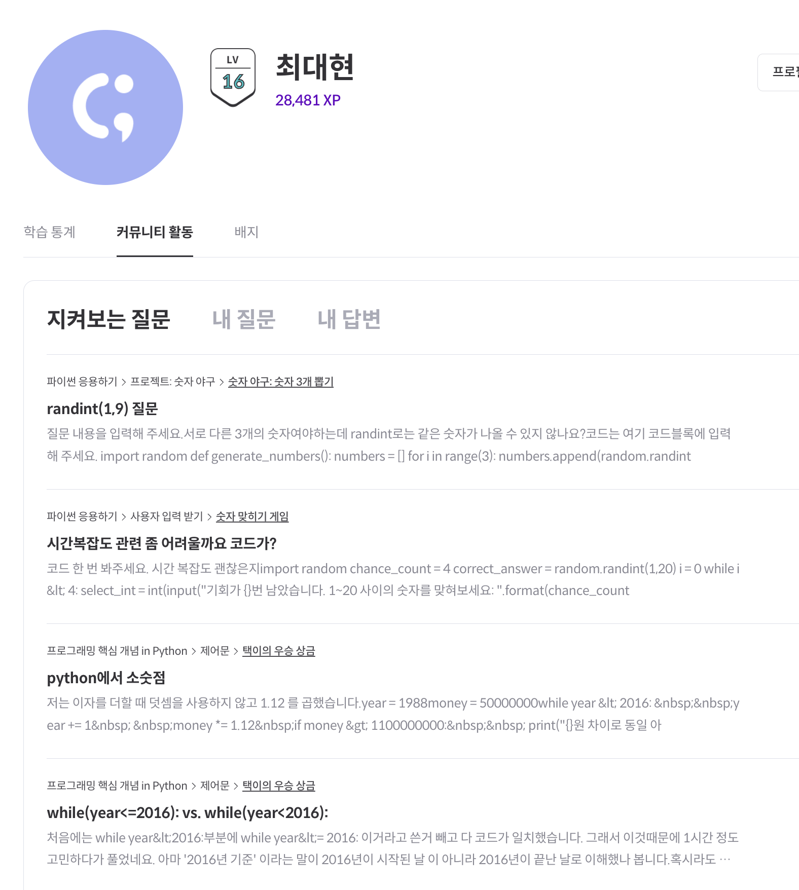 매주 수행하면서 코드잇을 널리 알리는 역할을 합니다.