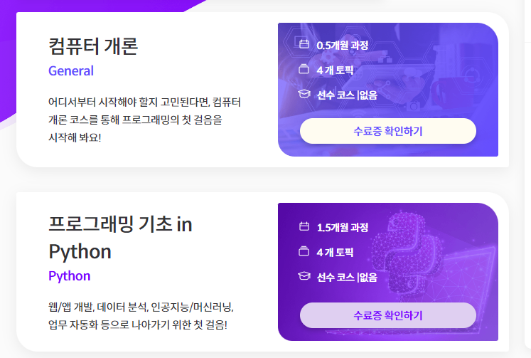 정규 가격 매달 39,800원으로 Python 기초, HTML, 인공지능, Node JS, Chat GPT를 통한 자동화 기술 등