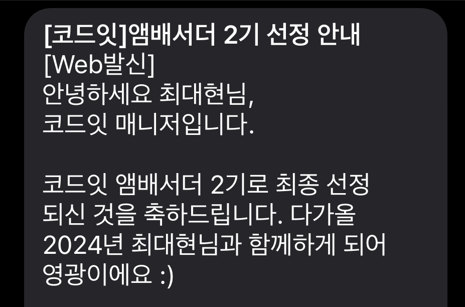 2024년 첫 대외활동으로 시작한 코드잇 앰배서더로 활동하게 되면서