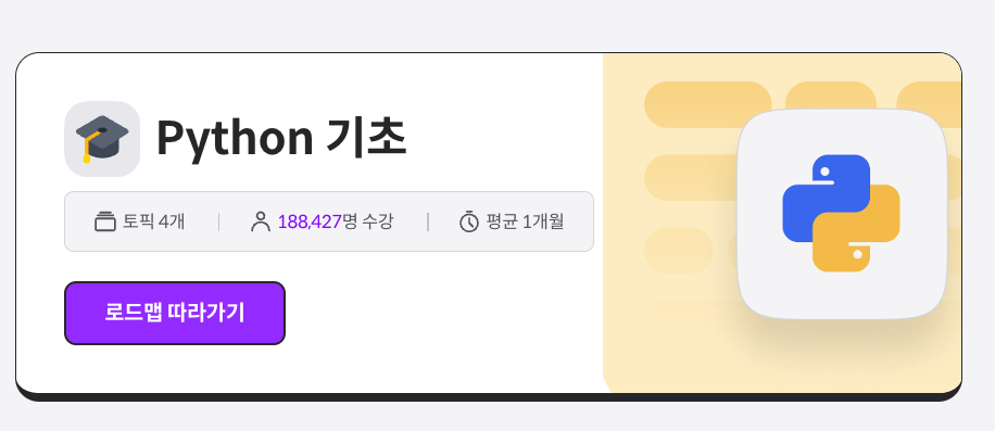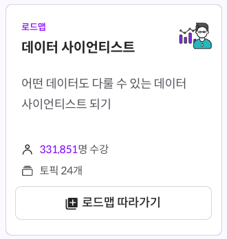 저처럼 데이터를 다루는 강의가 필요하신 분들은 꼭 아래의 링크를 통해 Python 로드맵을 수강해보시면 좋을 것 같아요!
